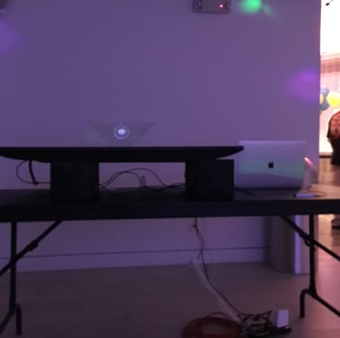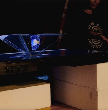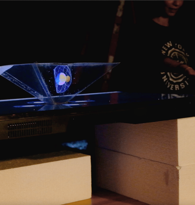 An interactive 3D holographic projection of outer-space that responds to music and hand gestures showcased at the BAM kids festival 2018.